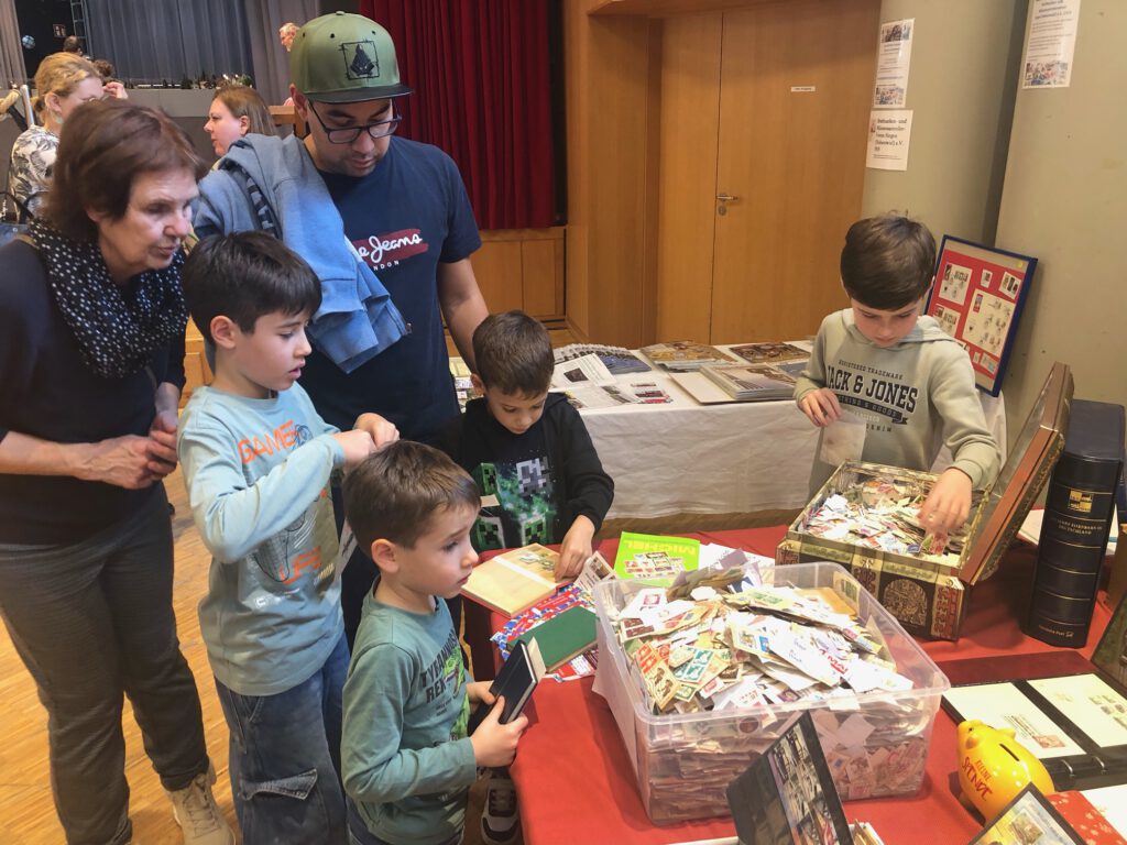 Uhr unser Sammlerfreund Joachim Löchle mit einem Briefmarken-Stand unseren